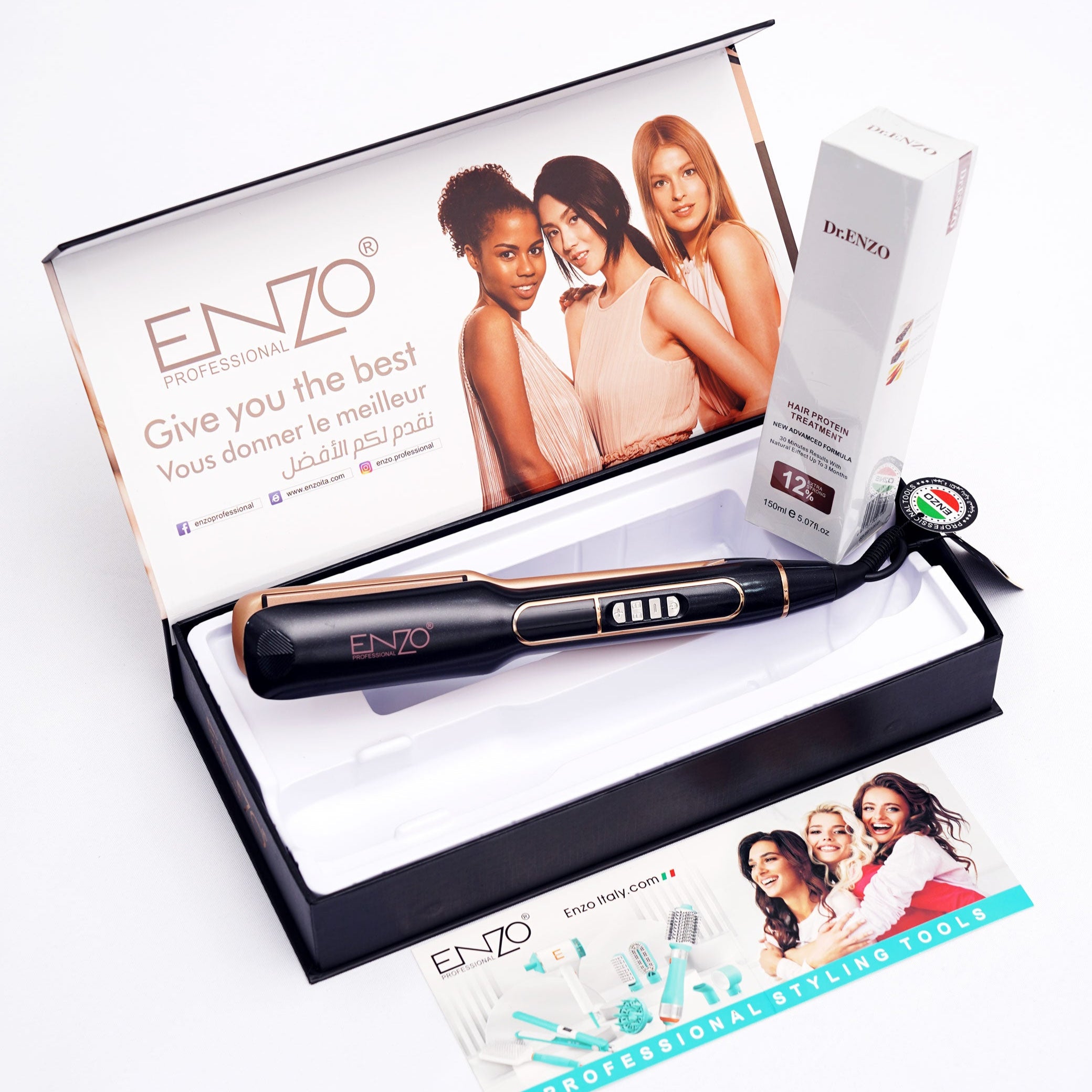 xObtenez un coiffage de qualité salon avec le Lisseur Ionique ENZO Professional, conçu pour des résultats lisses, soyeux et sans frisottis. Conçu avec les éléments protéinés pour cheveux Dr. Enzo, ce lisseur innovant nourrit vos cheveux tout en offrant une finition brillante et longue durée. La technologie ionique réduit l'électricité statique et améliore la brillance, tandis que les plaques flottantes en céramique glissent sans effort, assurant une répartition uniforme de la chaleur avec un minimum de dommages.